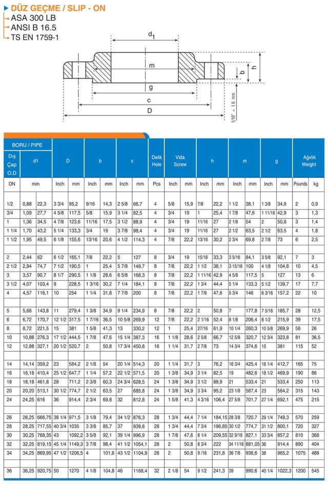 DÜZ GEÇME FLANŞ ASA 300
