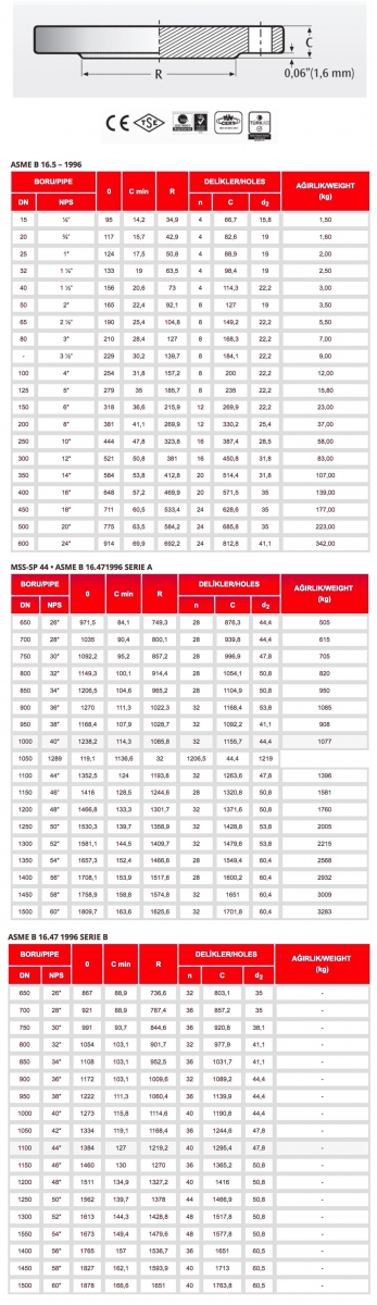 KÖR FLANŞ BASINÇ SINIFI 300 LB