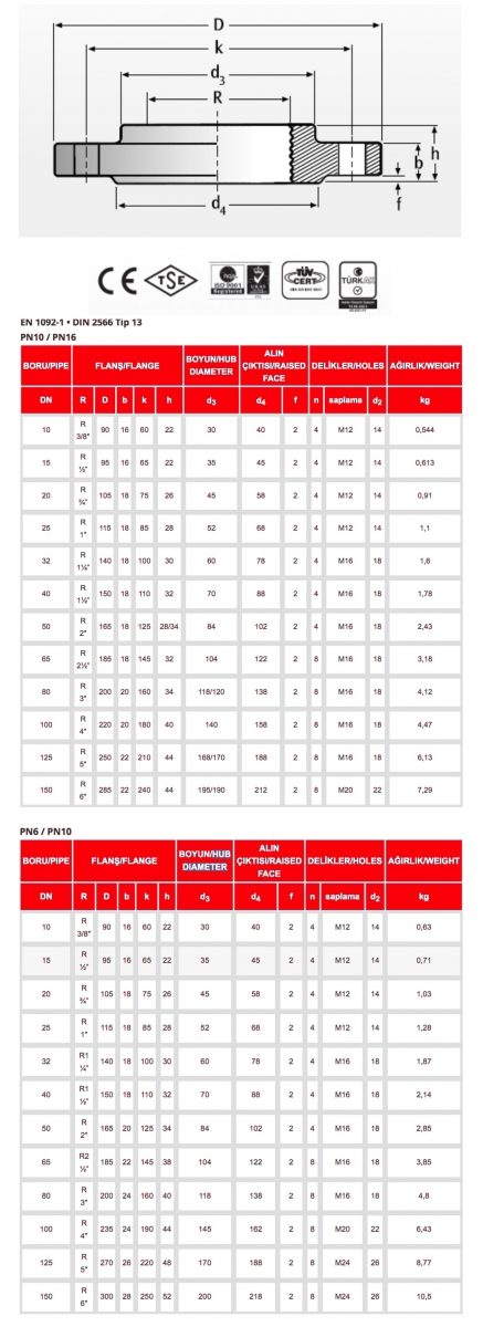 BORULAR İÇİN VİDALI FLANŞLAR