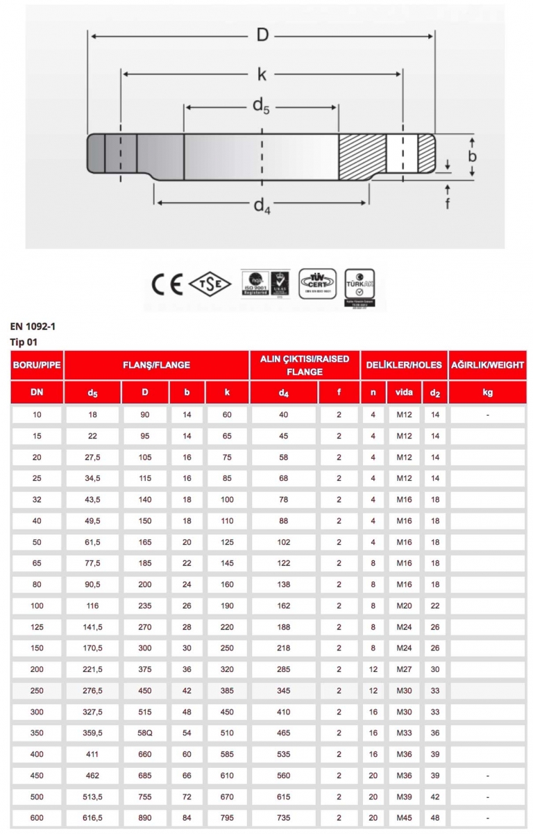 DÜZ FLANŞLAR PN 40